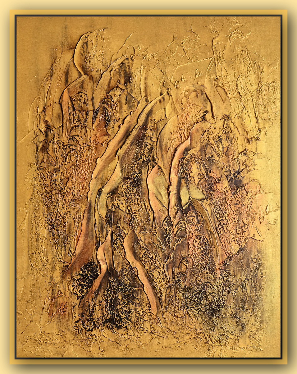 Kräftige Strukturen und glänzend schimmernde unterschiedliche Goldtöne machen das Bild zu einem edlen Hingucker.