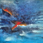 Ein Bild voller Schwung und Dynamik mit sehr kräftigen Farben und Strukturen. Die Seiten sind schwarz bemalt (Galerierahmen)