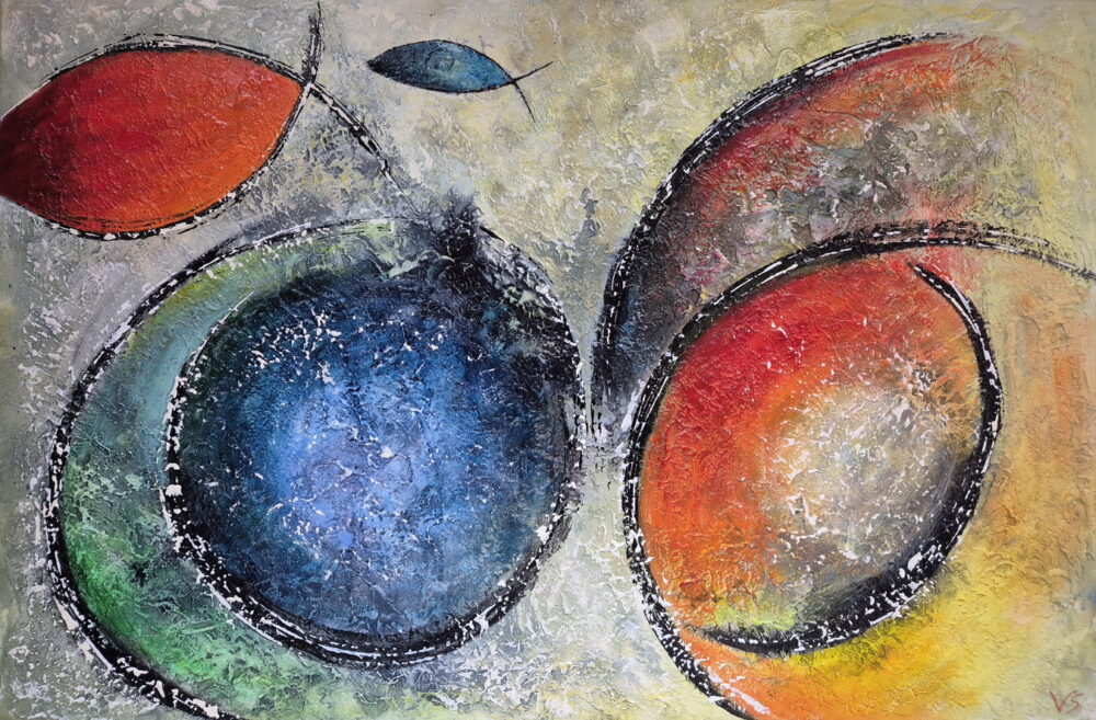 Volker Senzel entwirft und malt hauptsächlich großformatige, abstrakte und surrealistische Bilder in Acryl unter Verwendung verschiedener Techniken.